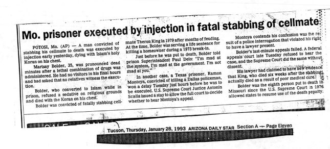 3 weeks to the day of my arrival on death row the State of Missouri committed a state-sanctioned (if you don’t know, on the death certificate it says “homicide”) murder, the 8th since the death penalty was reinstated in Missouri in 1981. His name was Martsay, he was 36. I didn’t know Martsay personally, as I’d just arrived, but I knew of him. Martsay was accused of killing another inmate (this blog isn’t going to touch on innocence and/or guilt, that’s not my place) 14 years earlier.